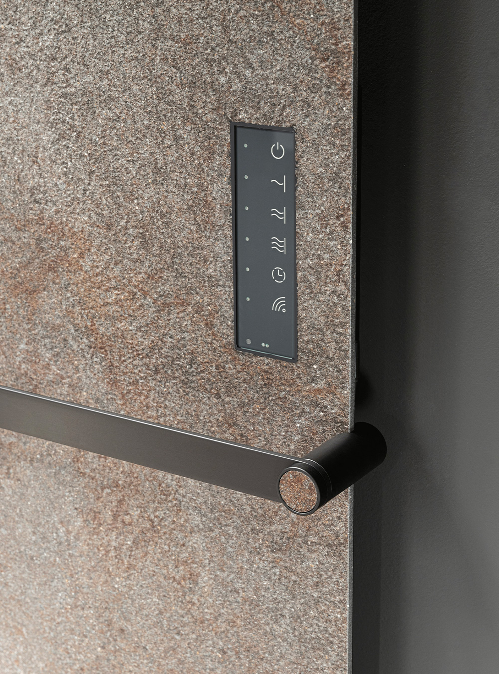 Finiture pregiate e ricercate, quali Laminam e Gres, caratterizzano Aureo, uno dei termoarredo della linea Ibra Showers, che può essere coordinato agli altri elementi del bagno quali mobili e piatti doccia. Slim, small e medium sono le tre dimensioni disponibili per il termoarredo Aureo che dispone di una pratica tastiera touch nera e di un telecomando per la programmazione. Al fine di aumentare ulteriormente la sua funzionalità, Aureo può essere completato dagli accessori Zeus e Chronos, che offrono un tocco di design esclusivo.