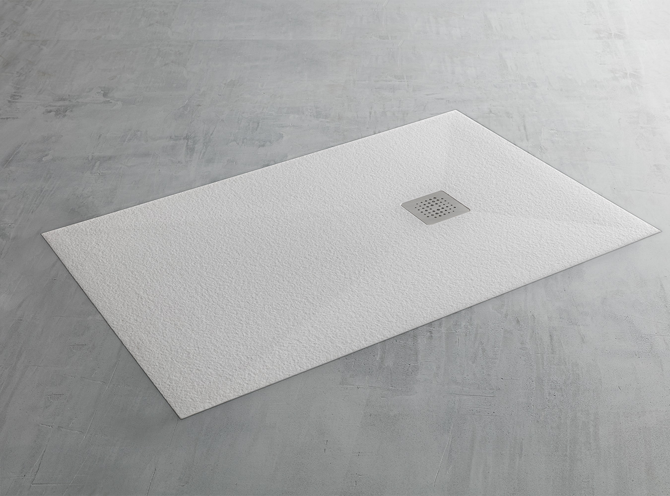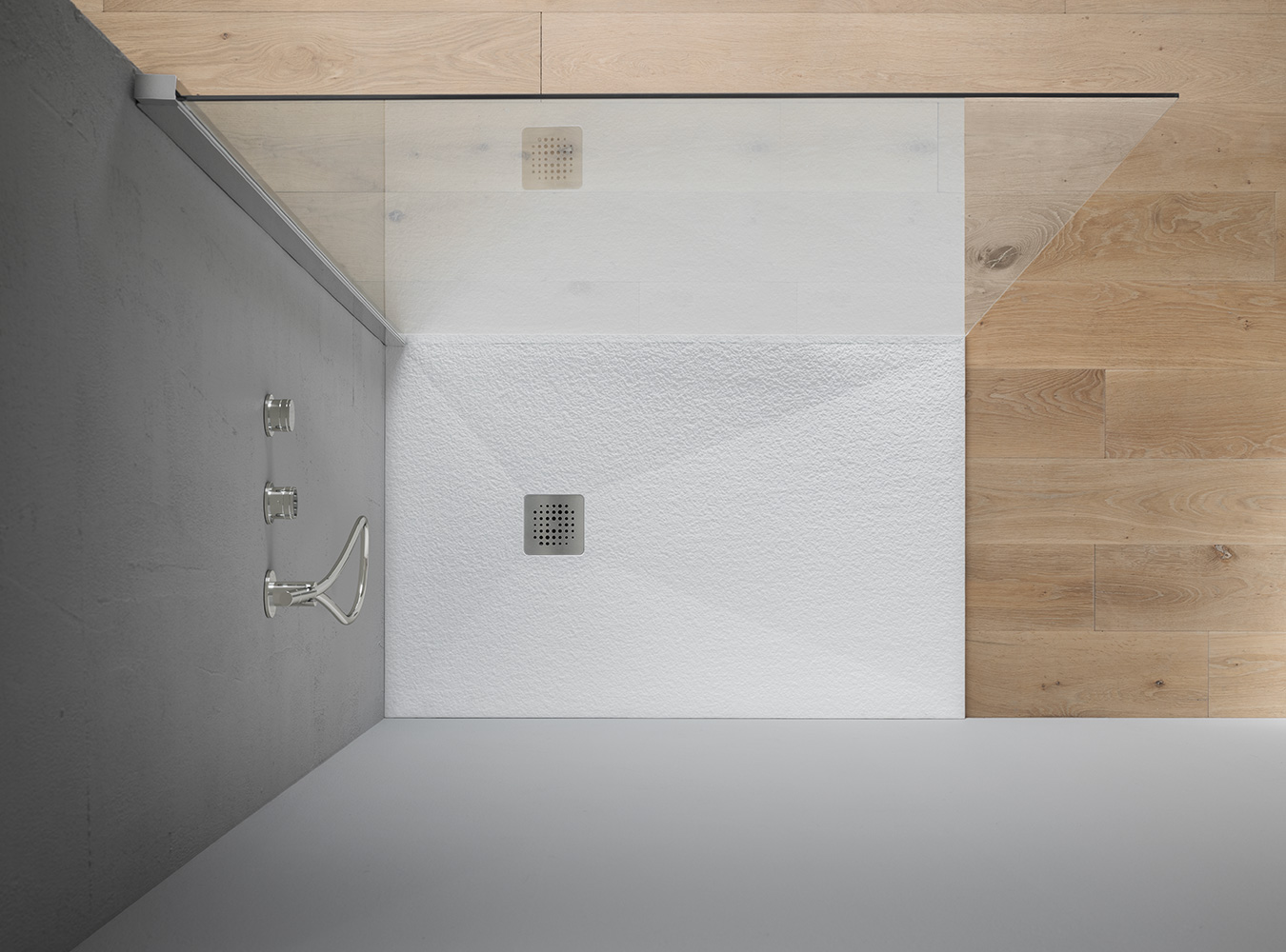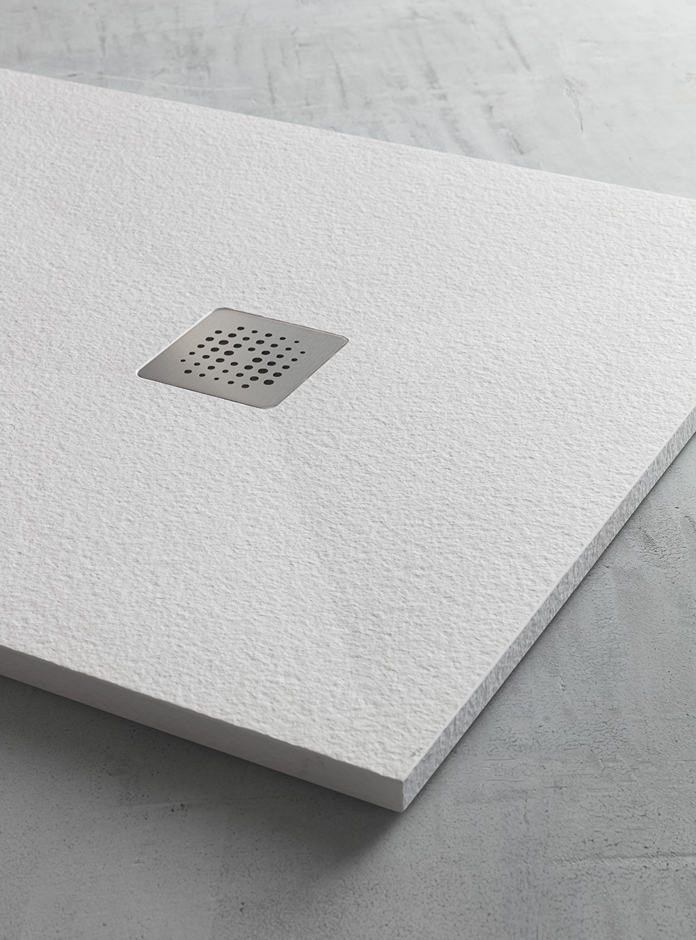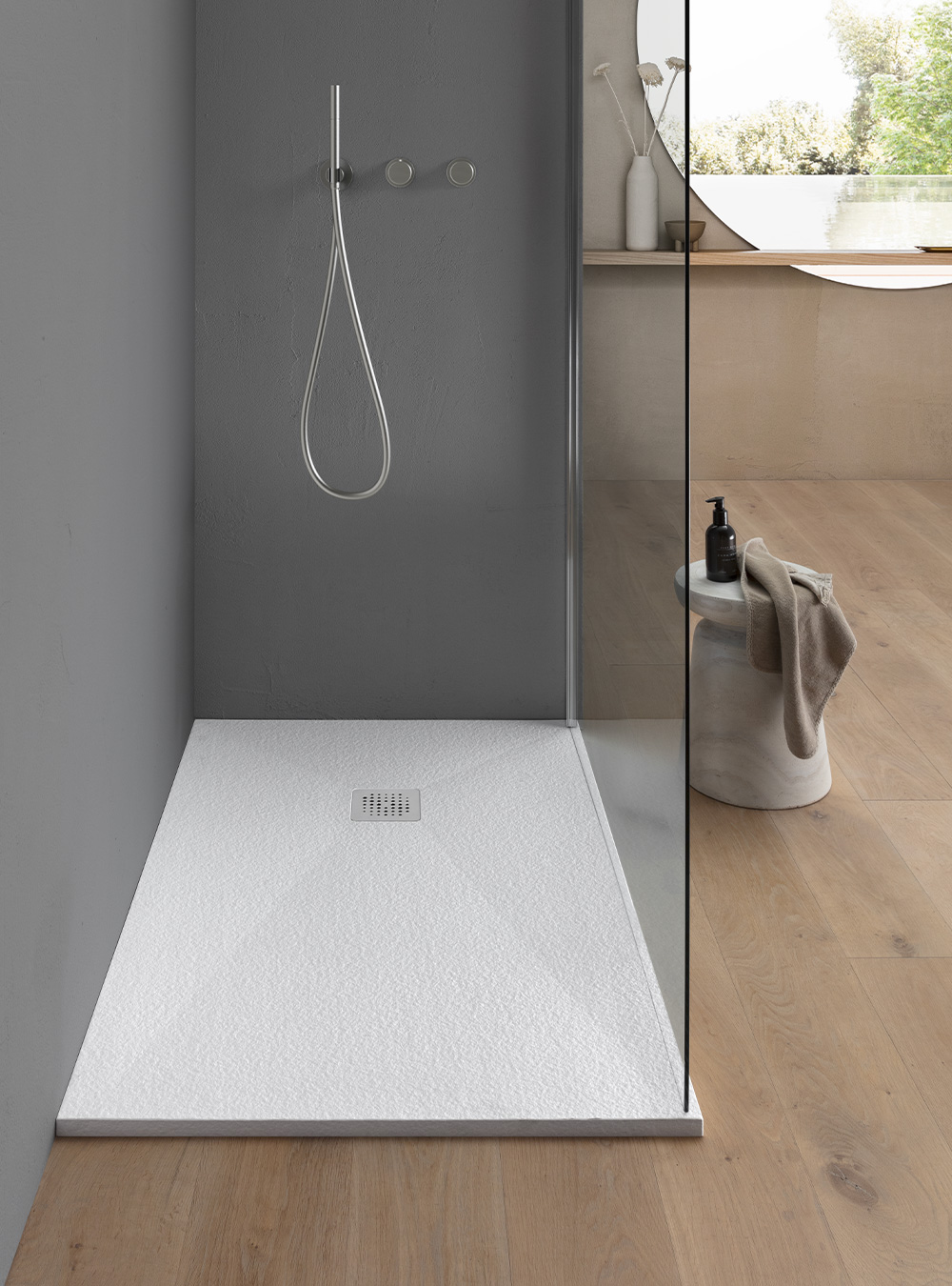Linee semplici e pulite caratterizzano il piatto docci Feel di Ibra Showers che può essere installato sia in appoggio, con bordo texturizzato a vista, che a filo pavimento, per un effetto minimal. Realizzato in Mineralsolid®, un materiale in finitura Bianco con texture effetto pietra, il piatto doccia Feel è perfetto per essere installato in ambienti bagno sia dal gusto moderno che classico. Le sue proprietà lo rendono facilmente ripristinatile e lavorabile in opera.