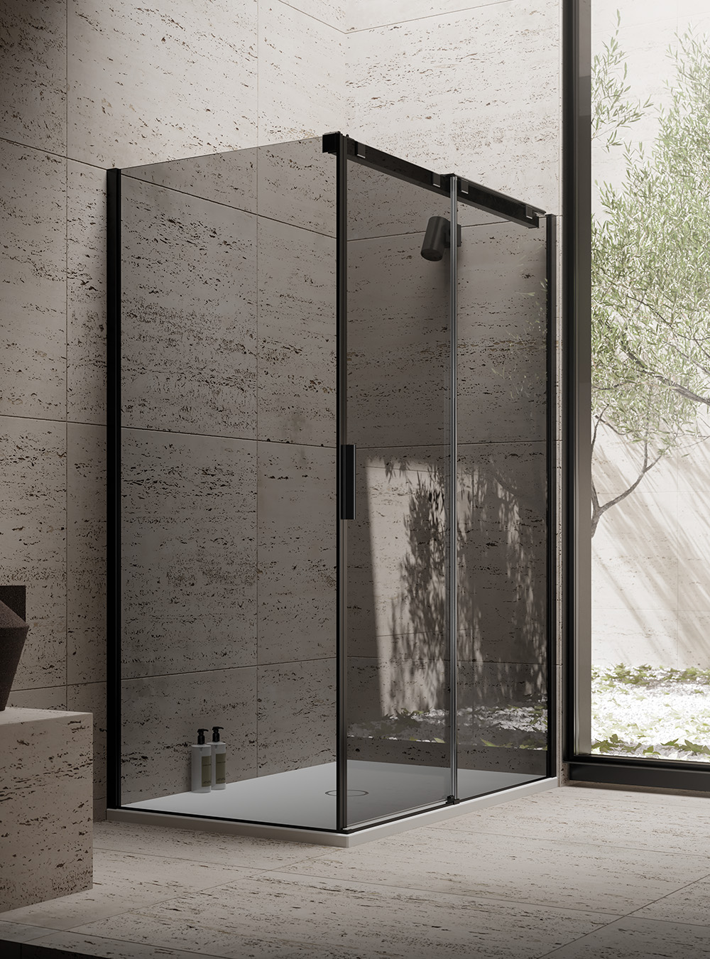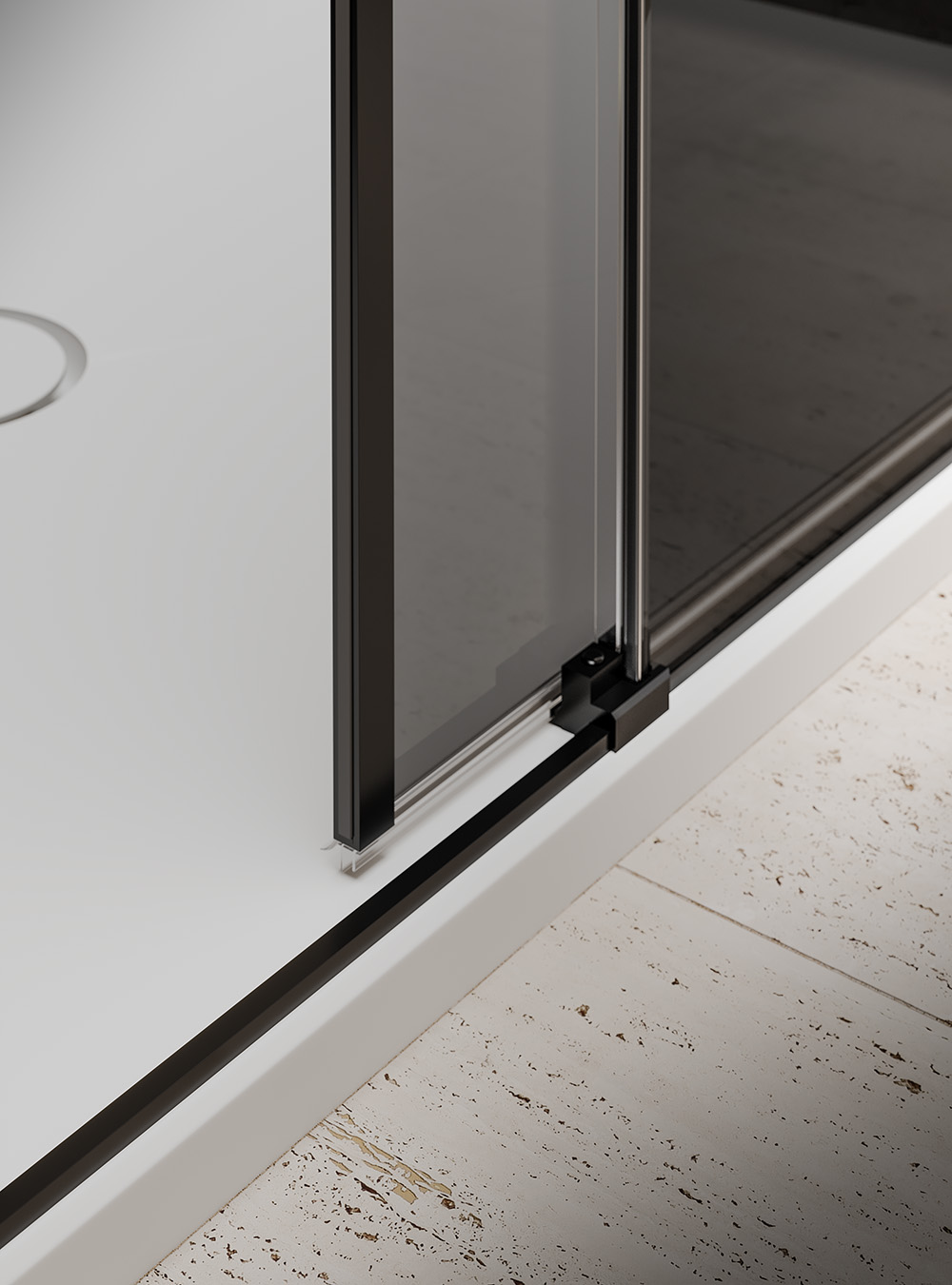 Maniglia su profilo, sgancio rapido della porta, nessun fissaggio della traversa a muro.