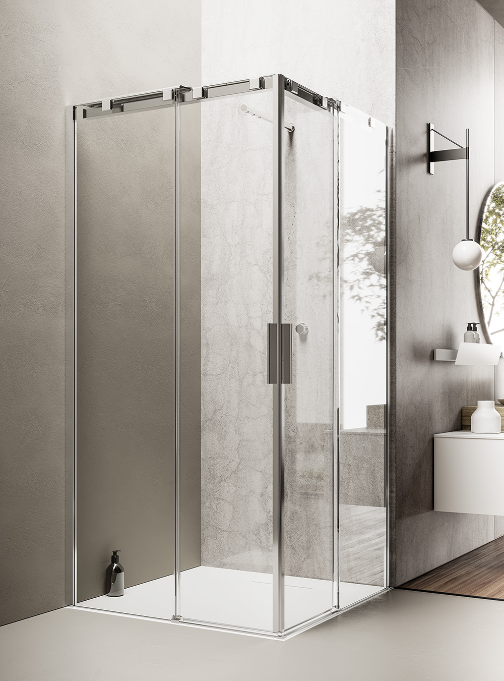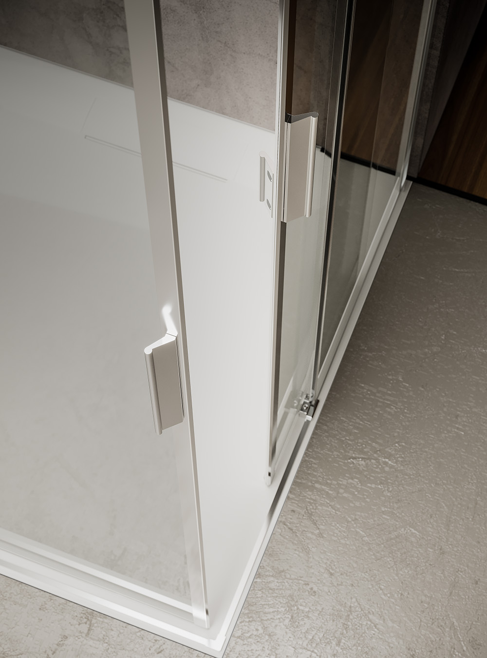 Maniglia su profilo, sgancio rapido della porta, nessun fissaggio della traversa a muro.