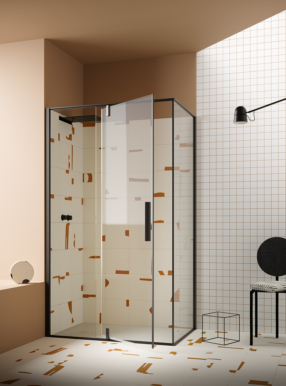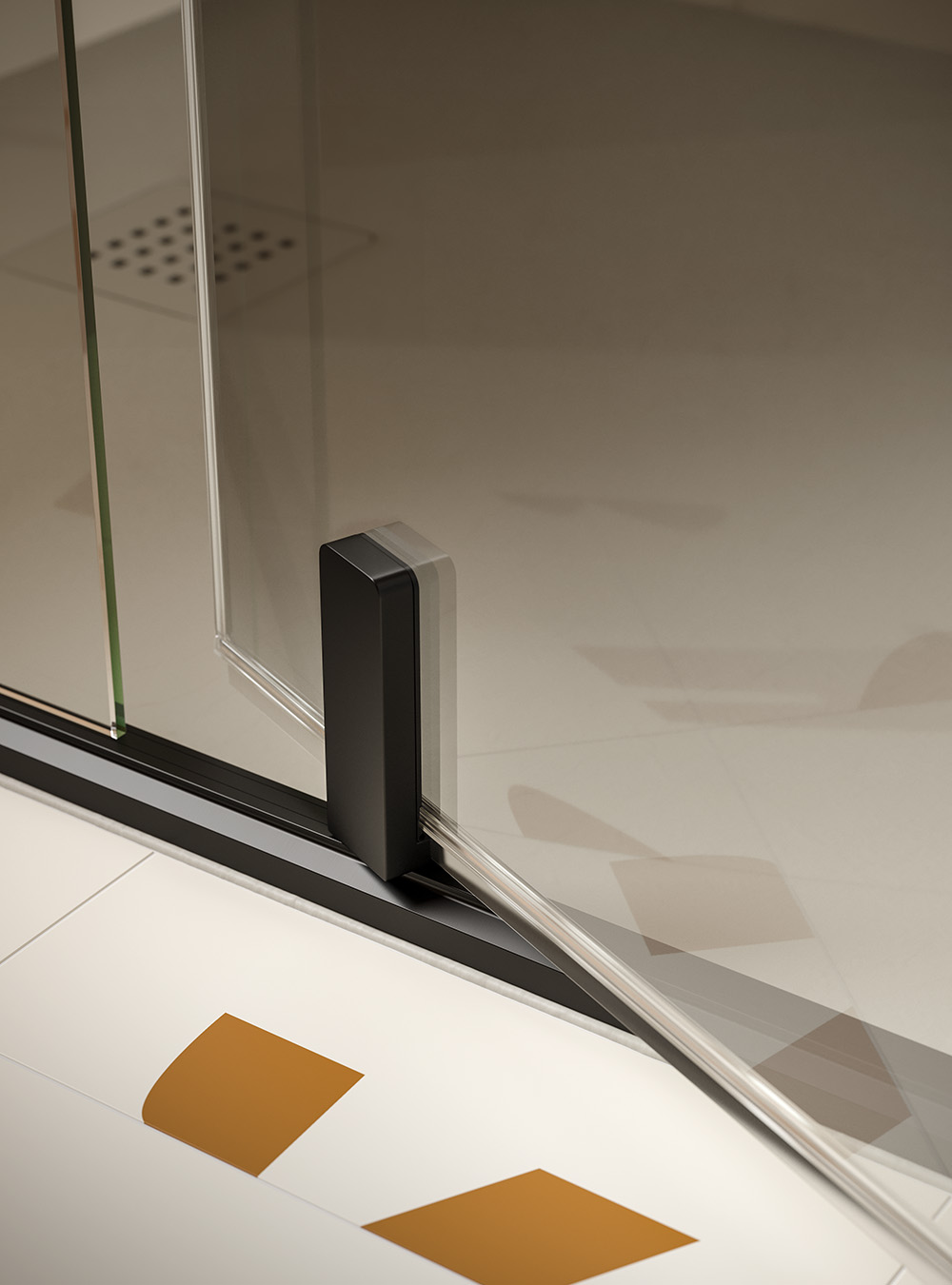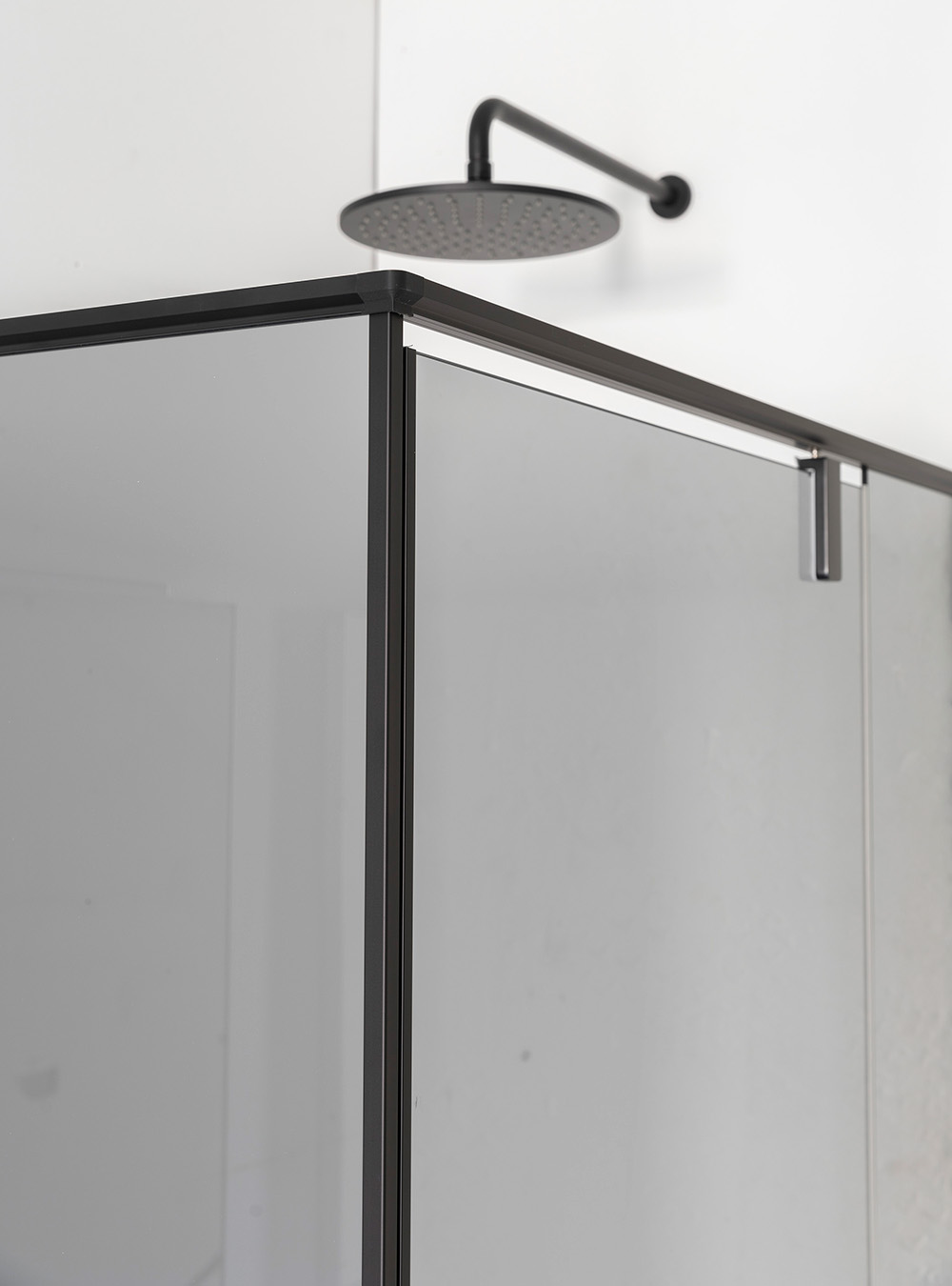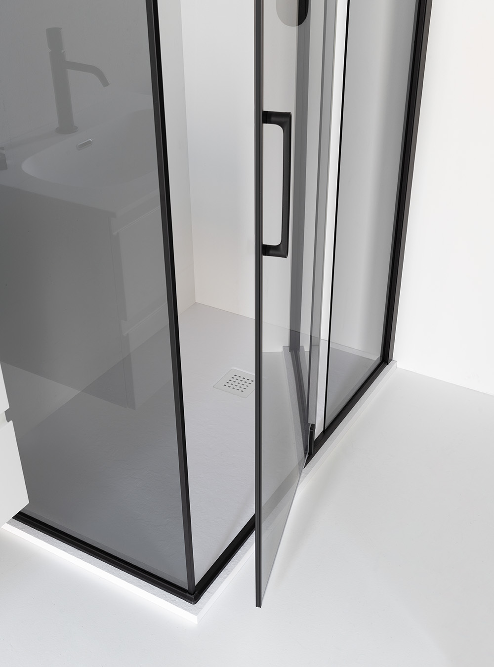 Cerniera pivot, profili portamagnete in finitura, reversibile.