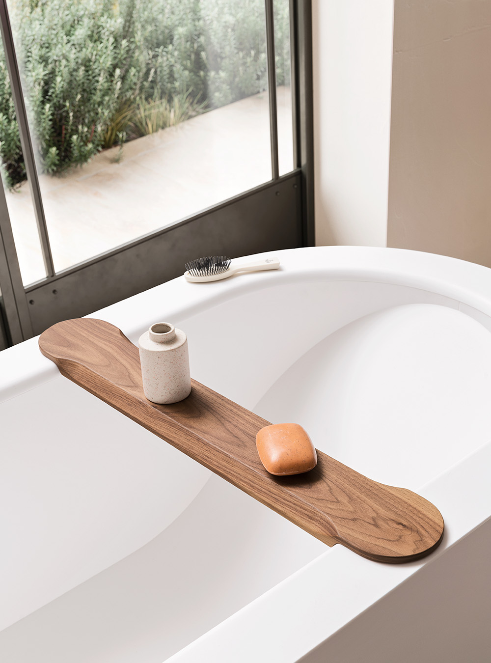 Perfetta sintesi tra linee essenziali e matericità, la vasca Roman di Ibra Showers si contraddistingue per lelevata valenza estetica connotata dalleffetto vellutato e dalla piacevole tattilità garantite dallutilizzo del Tekno Deimos Opaco. Dall’esclusivo design firmato Garcia Cumini, la vasca Roman trova la sua massima espressione se collocata a centro stanza, grazie alle sue linee esclusive che donano prestigio all’arredo bagno. Per una maggiore praticità e funzionalità, la vasca freestanding può essere corredata di una elegante mensola in noce canaletto, dove riporre saponi e profumi, e affiancata ad una serie di accessori sempre a firma Garcìa Cumini.