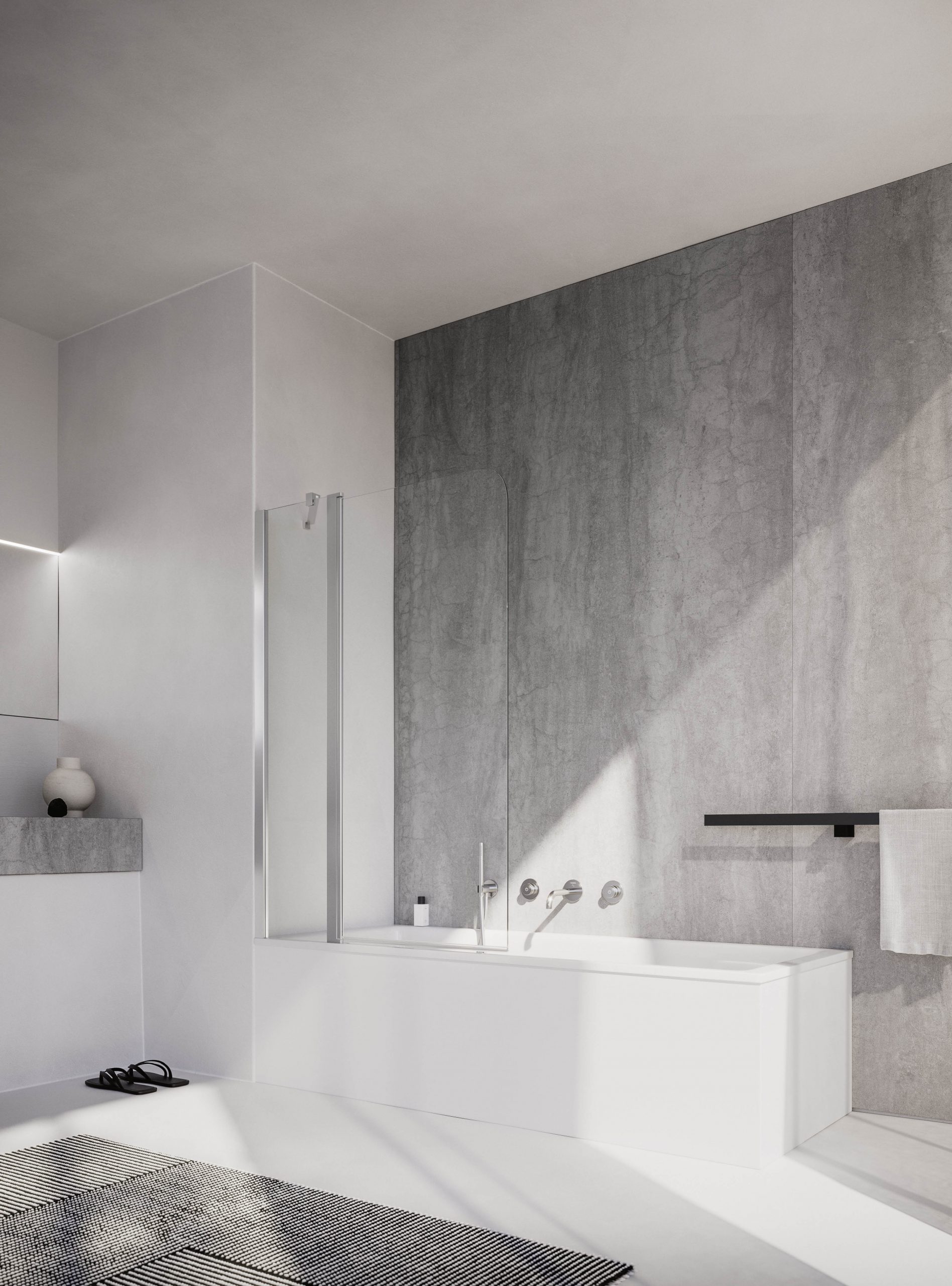 Sopravasca angolo con cerniera con sollevamento in apertura + fisso, disponibile fuori misura, braccetto a 45°